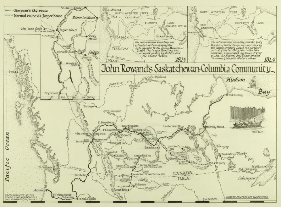 This interesting map from the James Grierson MacGregor fonds depicts fur trader John Rowand's Saskatchewan-Columbia Community.