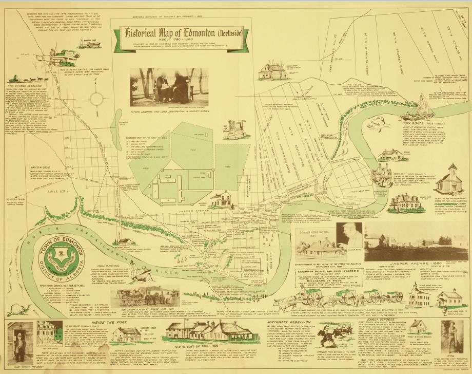 This map, compiled in 1958, from the James Grierson MacGregor fonds provides a historical look at Edmonton's northside.